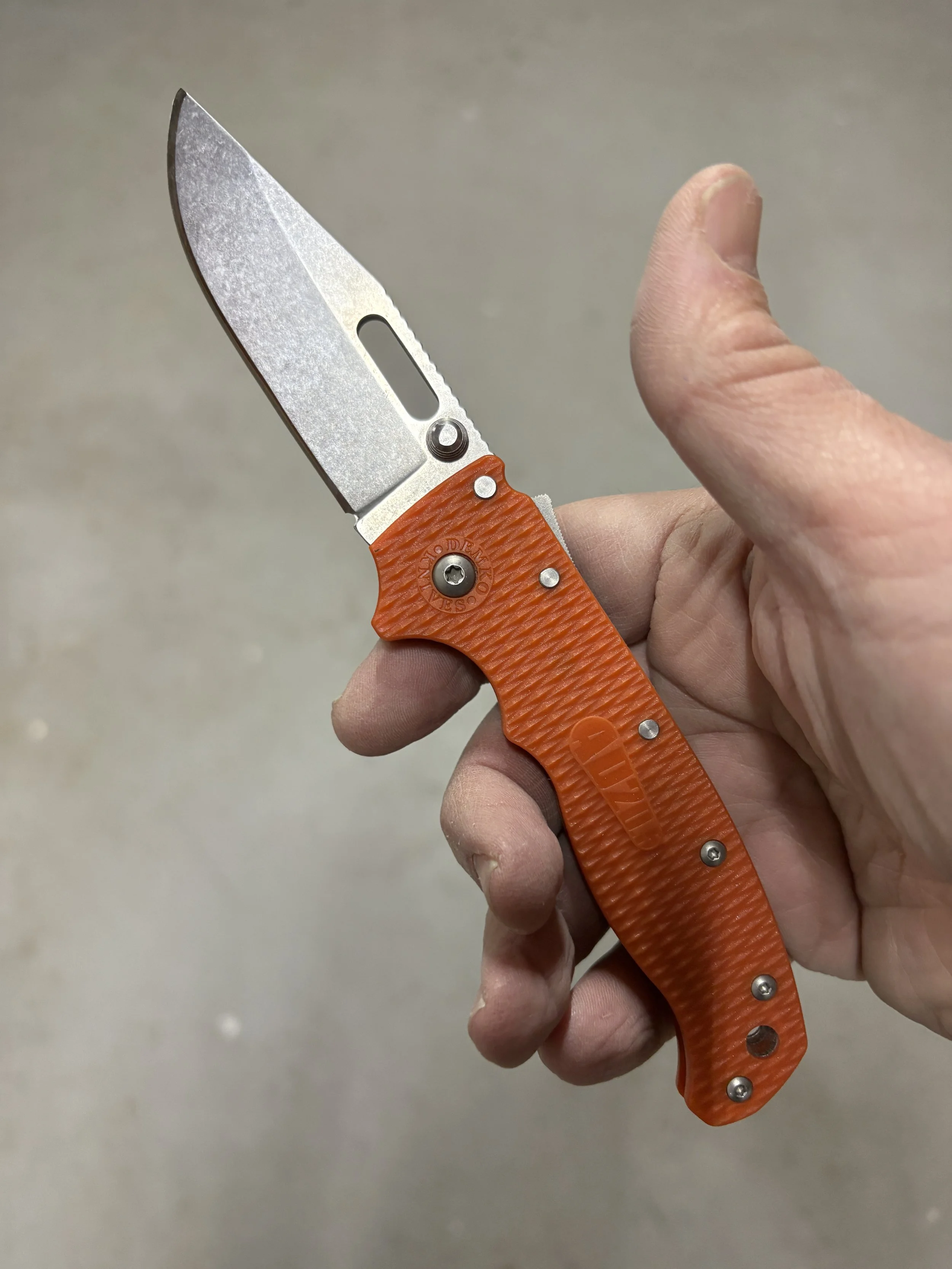 Don’t think that this score means that this knife is a bad one. It’s probably the best 13 out of 20 I have ever reviewed. But it is a flawed knife. And sometimes flaws line up really well with the scoring system and you have a low score on a very good design. This is review is a perfect example of that. There are just a lot of head slappers, none of which impact function. Having both a thumbstud and a thumb oval makes no sense. The gappy rear tang is both ugly and potentially a problem. The blade stock is chonky at all get out. And the AUS-10 steel is pretty spectacularly awful. But…and to have a cavaet after all that is impressive…the bones of the knife are good. Its thin in the pocket. It locks up well. It deploys easily. Despite its flaws, of which there are many, the AD 20.5 still just appeals to me. Think of this as an A-10–that plane has flaw after flaw after flaw, but its so good at the one thing it is supposed to do that even now, years later, we still use it. And there are ways to make this knife better. First, scrap the AUS-10 steel. It is worthless. Going from AUS-10 to 14C28N or even S35VN would be a huge upgrade for not much money. That wins you back a point. Then, reduce the blade stock by 33%, that will not only save money, but make the knife slicer. That gets you another point. Drop one of the two deployment methods, preferrably the thumbstud as it is in the cutting path. That gets another point. Stopping there results in a 17 out 20, a much better score and there are Demkos out there like this from the man himself.