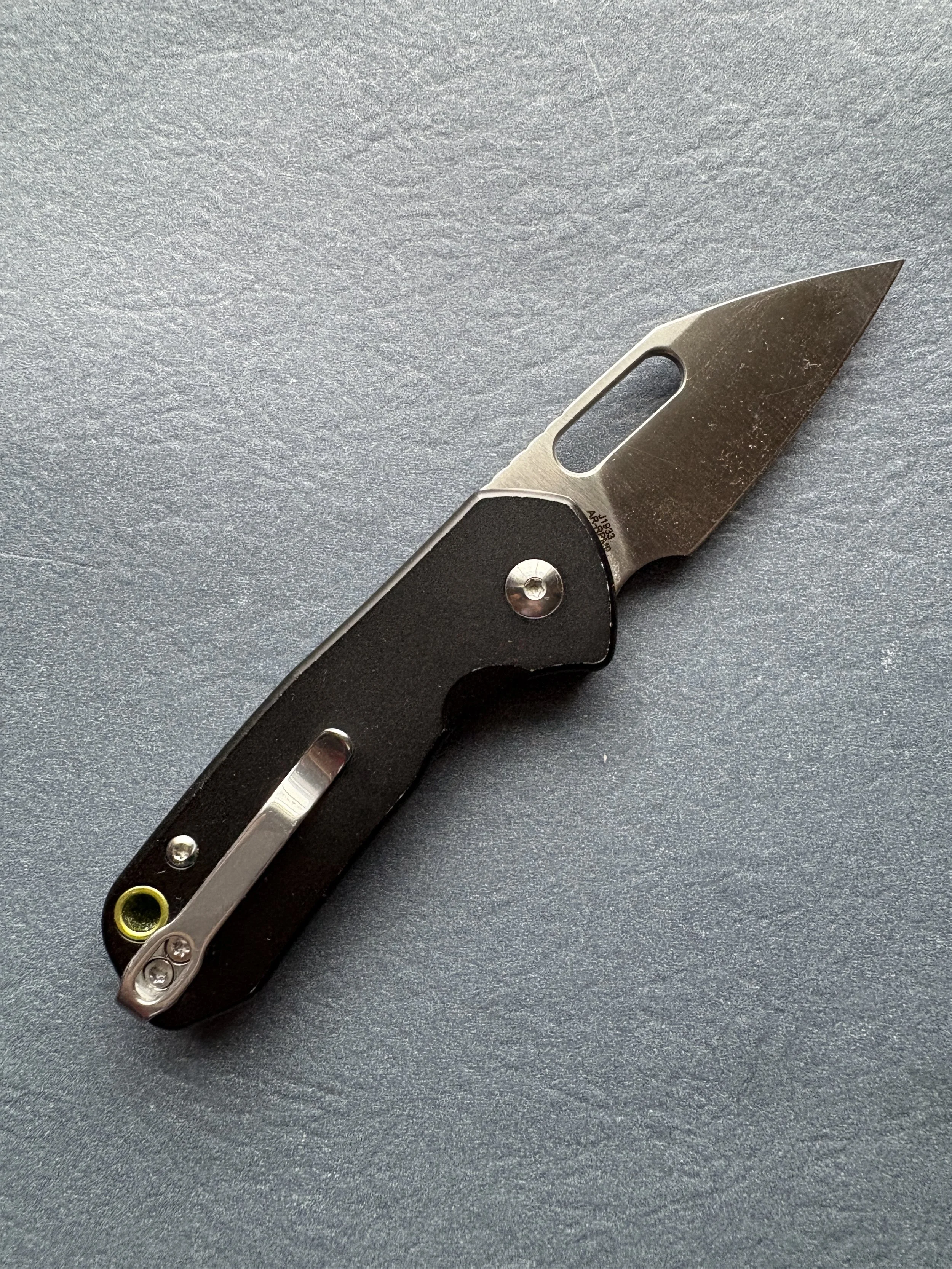 The original Pyrite was a pretty good knife. It was kind of the ur-Pretty Good Knife. Nothing stood out good nor bad. But it wasn’t compelling enough for me to reach for it in the morning. It was just kind of there. The Mini Pyrite, however, is the perfect size, in fact, my favorite sized knife. It slips easily into a coin pocket and it hides there until you need it. And that size thing is the reason I like this knife infinitely better than its larger brethren. The shape of the blade works on a visual level with the knife’s size and shape. It just works well.