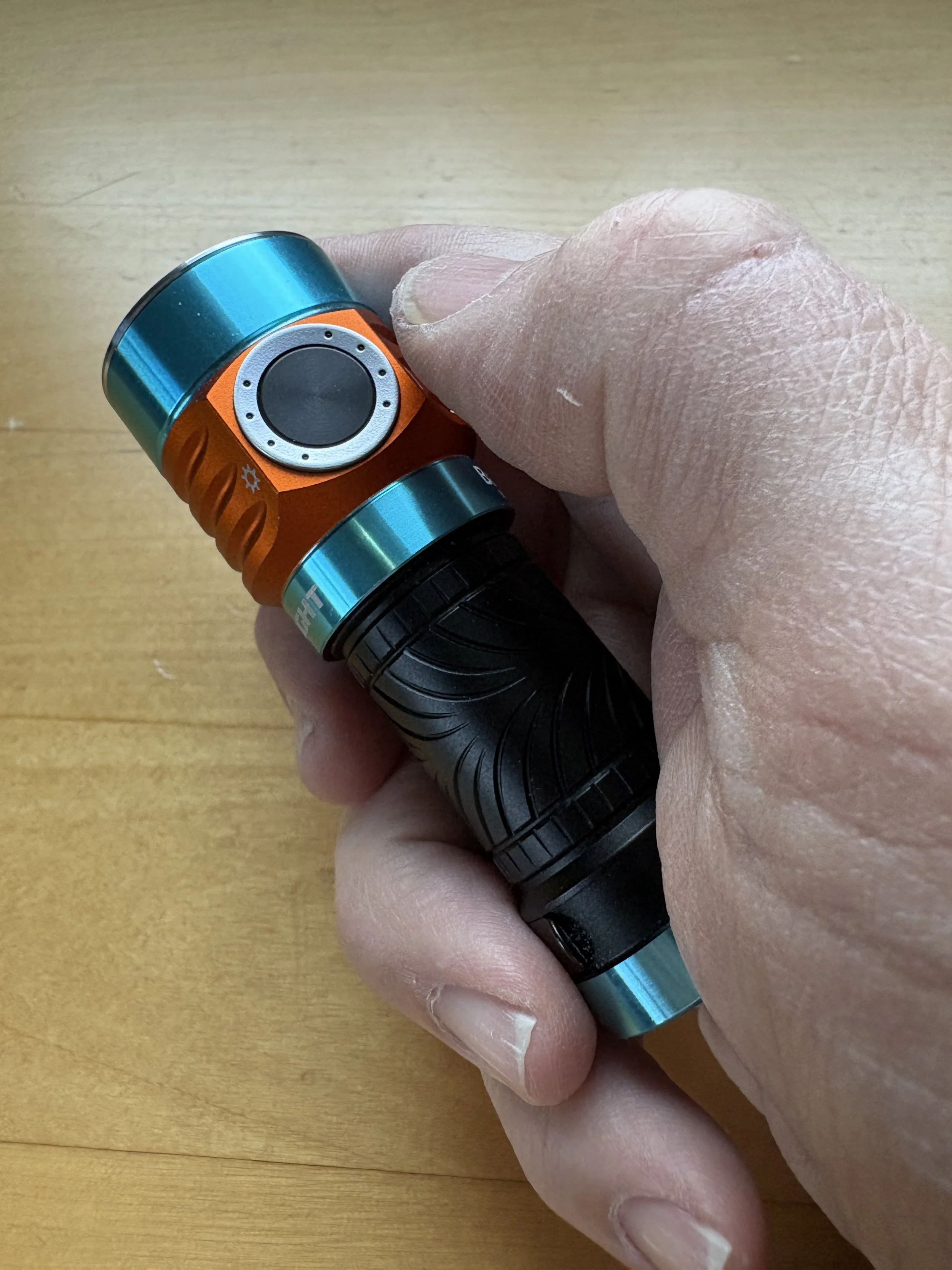Around the side mounted e-switch is a ring with four LEDs on either side. The left side (when looking down with the head pointed away from you) shows the output mode, while the right side shows the battery charge that is left. This is a great set up and is very, very easy to use. It strikes a nice balance between traditional “blind torches” that tell you nothing and the crazy complex ones found on some of the new flat bodied lights like the Nitecore Tini 3 (which will be in for review soon). The oLight system is informative without being distracting. Finally there is the size. This is a bigger light—taller than the aforementioned Mini Turbo, but it is not huge. It is half the size of the Surefire EDC-1 DFT, another 1xCR123a light with a throw head. As a compromise between those two sizes, I like the Turbo Baton.