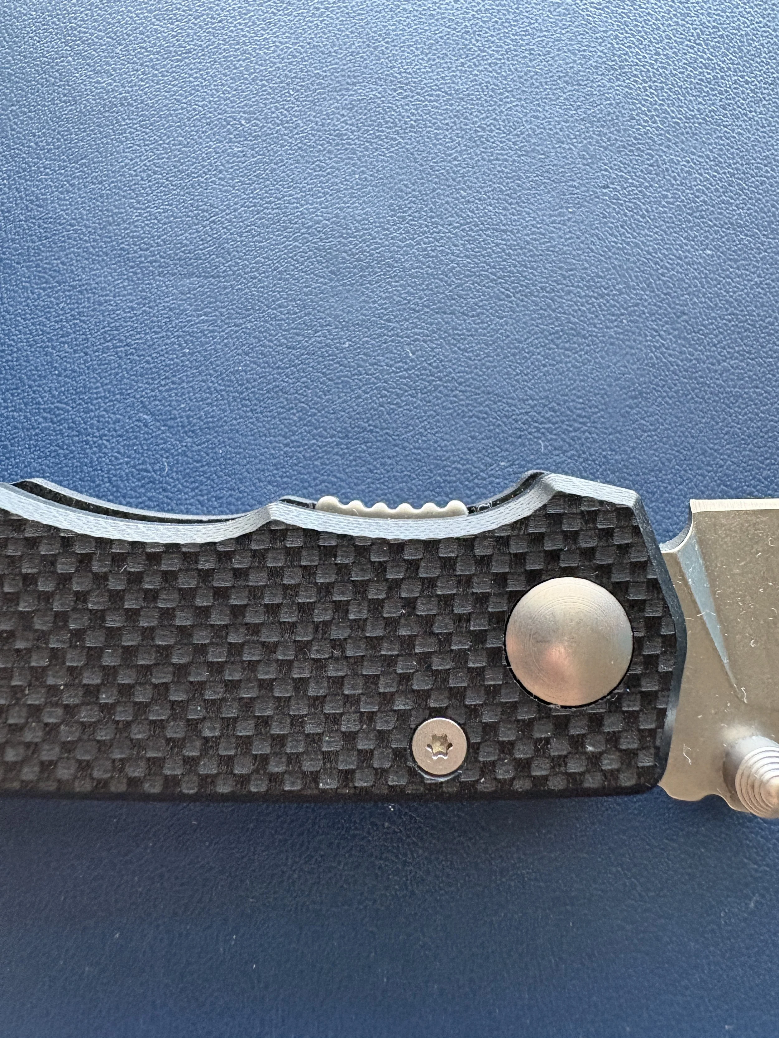 The deployment here is good—fat thumb studs and phosphor bronze washers make for a nice poppy blade without the extra, fidgety stuff like flippers and bearing pivots. Its like the formula of good detent and snappy thumb studs always works.