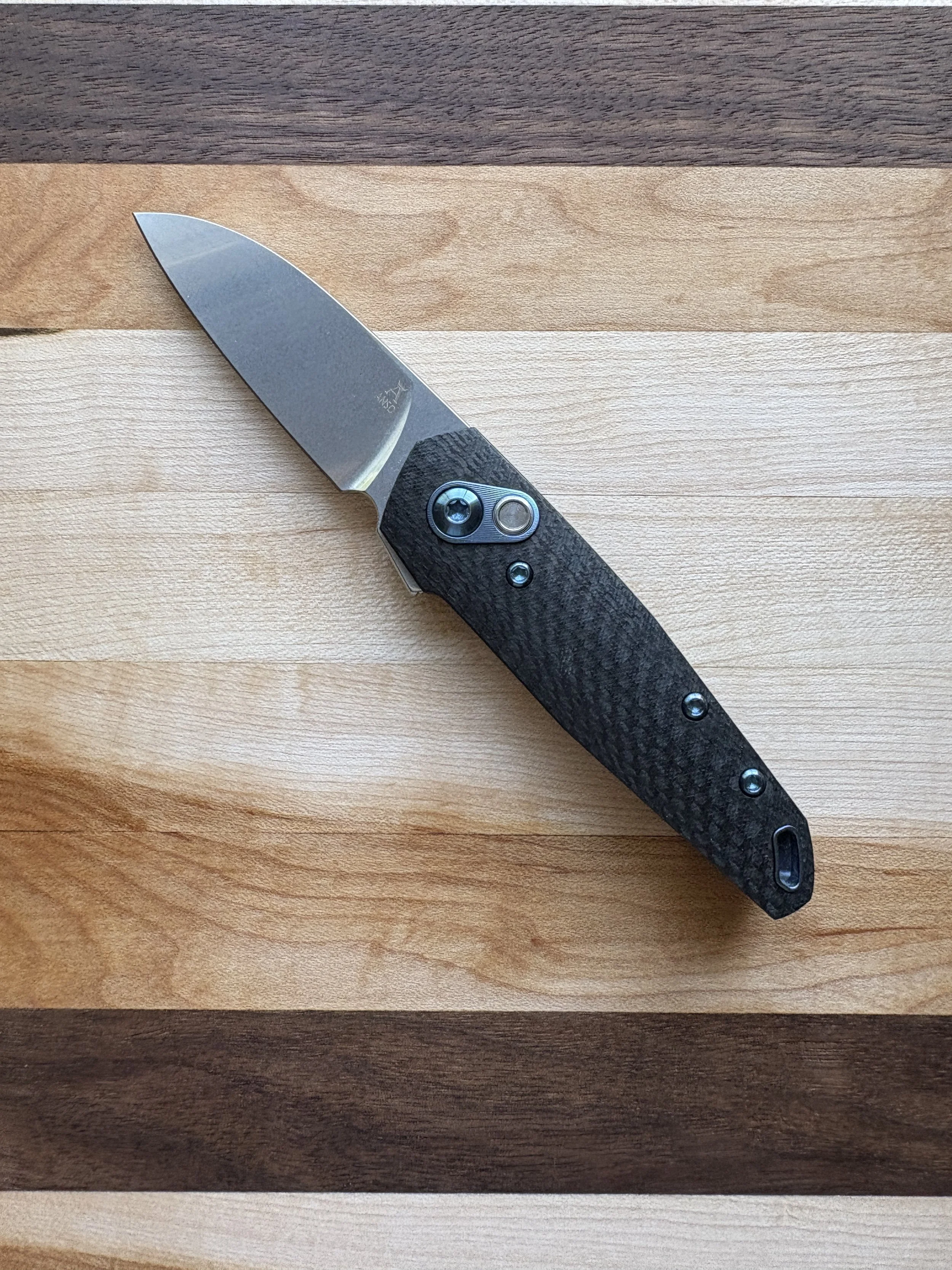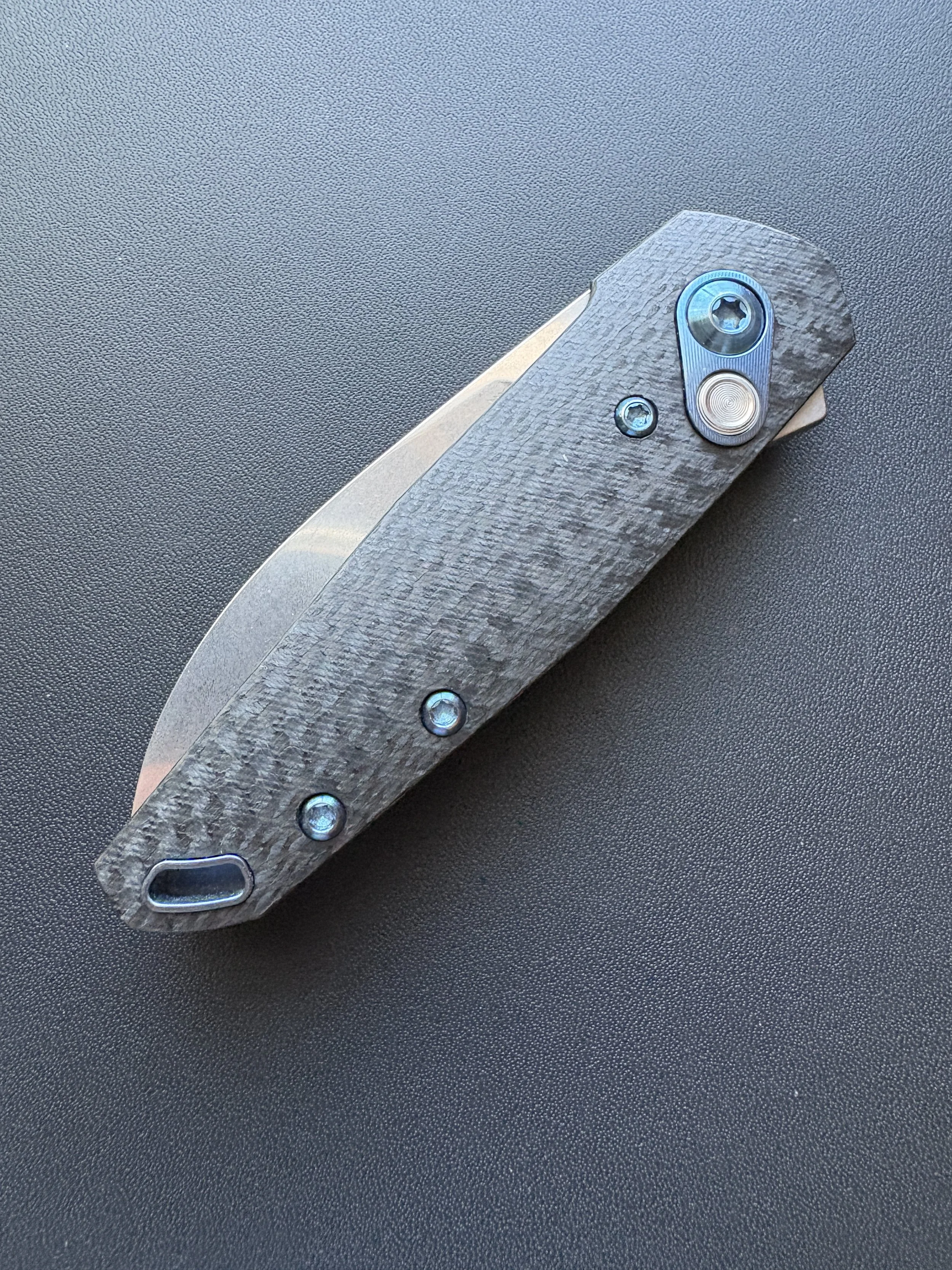 RWL34 is very similar to CPM154, the powder steel version of 154CM, and that is a good thing as this steel is both relatively rare and truly excellent. It’s probably roughly a peer of the M390 family of steels with a nice balance of corrosion resistance, wear resistance, and toughness. One thing that custom makers talk about with CPM154 is its easy take of a high polish. While the blade isn’t high polish, it is nicely finished with a bit of polish and stonewashing making for a hard wearing finish that still has a bit of bling to it.