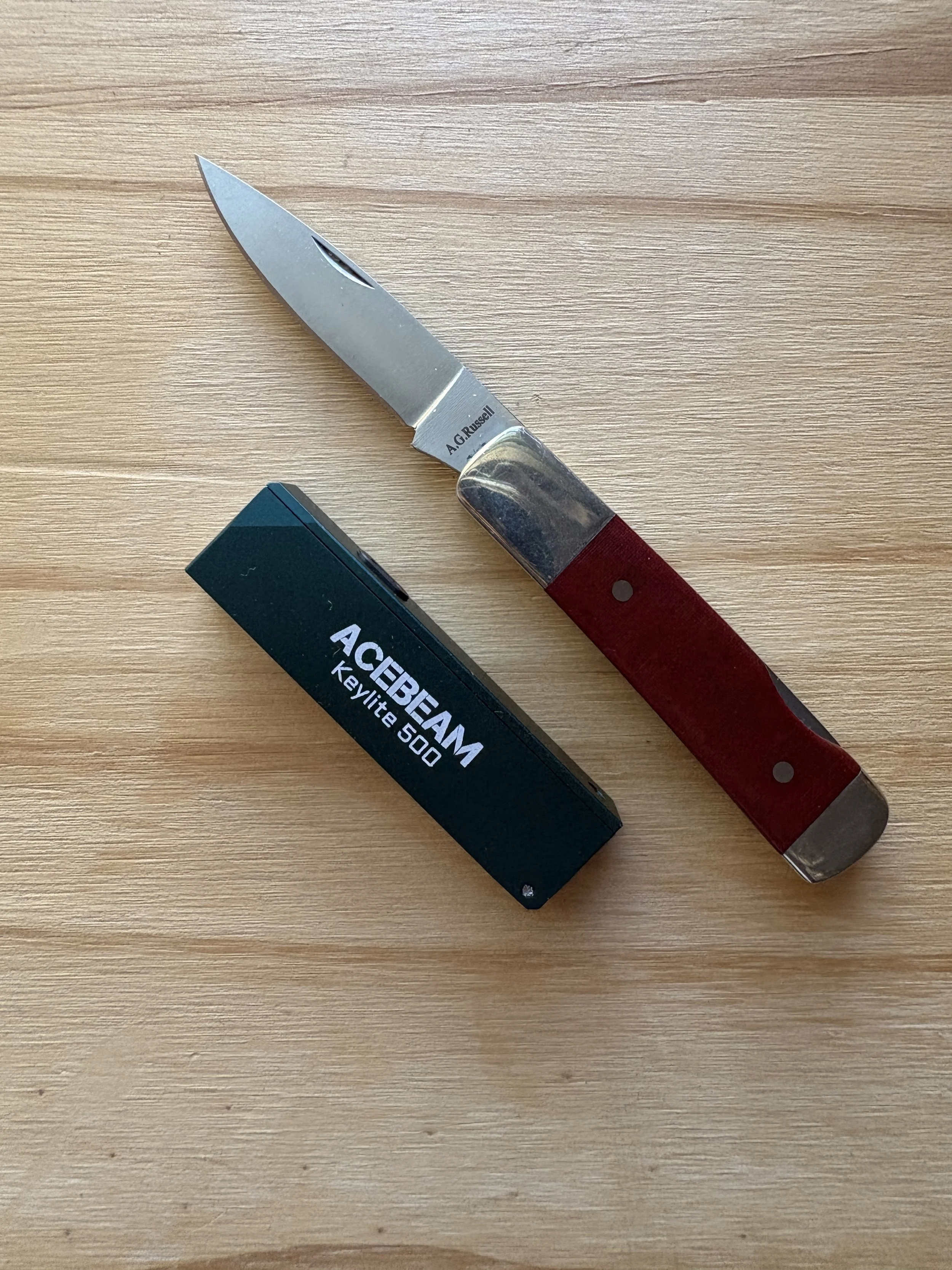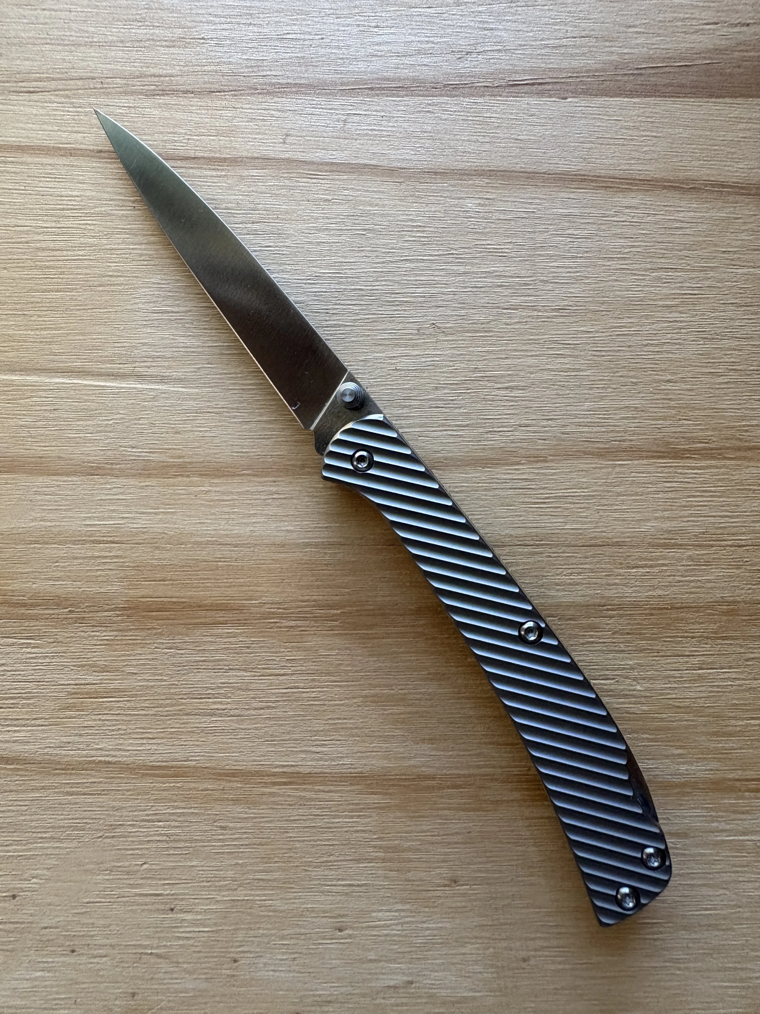 Modeled after an Al Mar, the knife is all titanium and steel. It has a clip and snappy deployment. It costs $100 but runs S90V blade steel, which is, by far, the best steel on a knife so far and certainly capable of going weeks without sharpening. It tips the scale at 1.4 ounces. There are quite a few traditional knives out there that fall into this category, but I would avoid Case Knives as they have spotty fit and finish. The AG Russell Gent’s Lockback is an extraordinary traditional with Elmax steel and a simple but beautiful design.