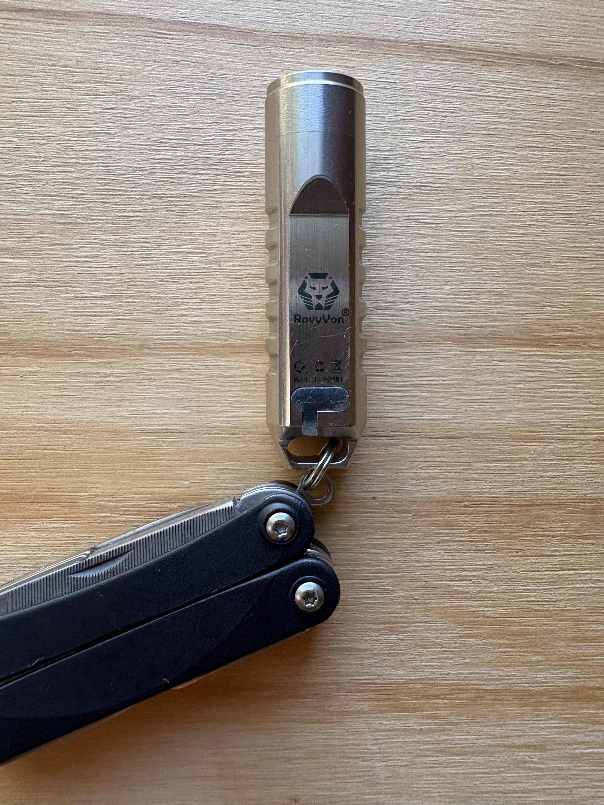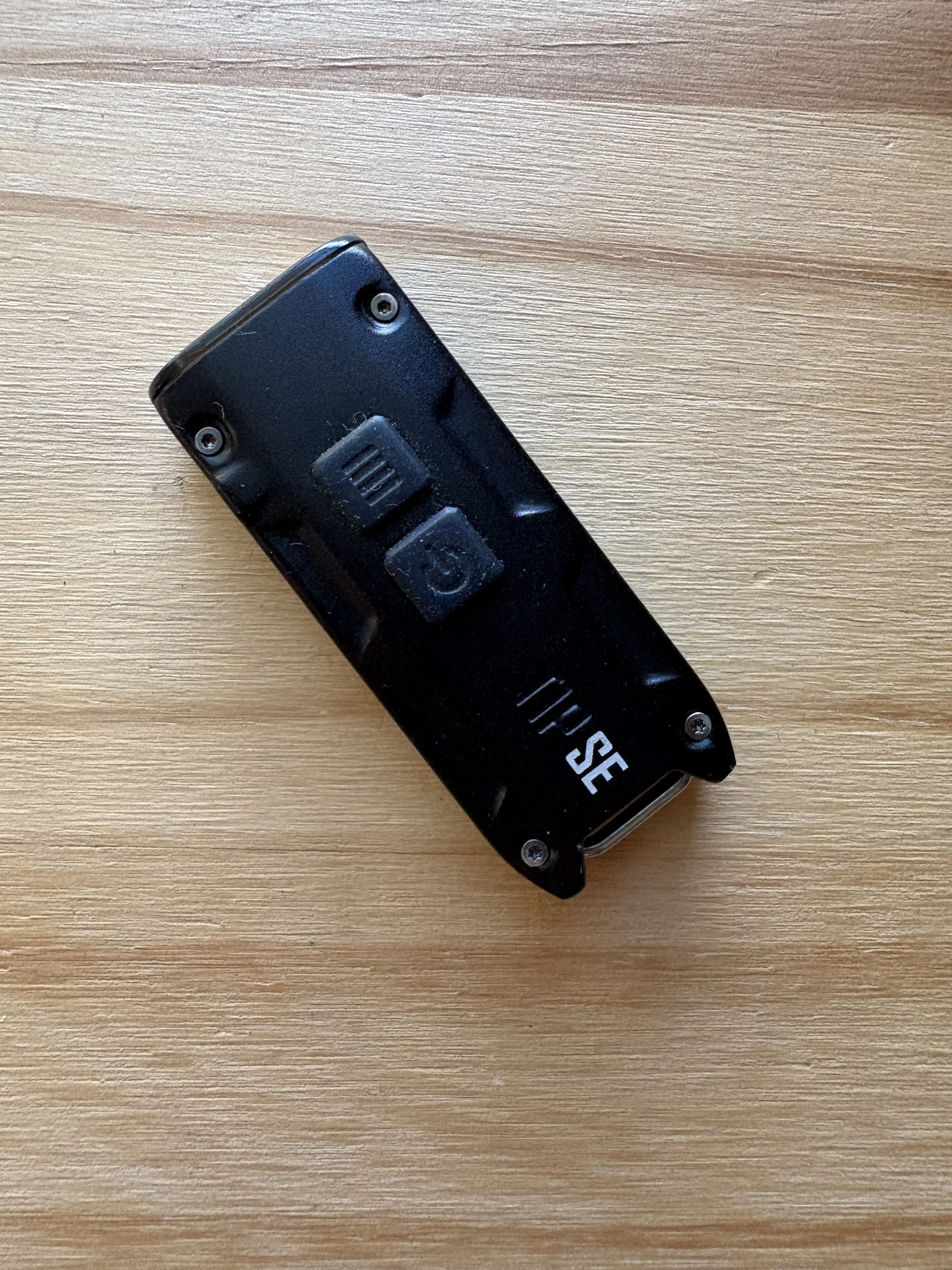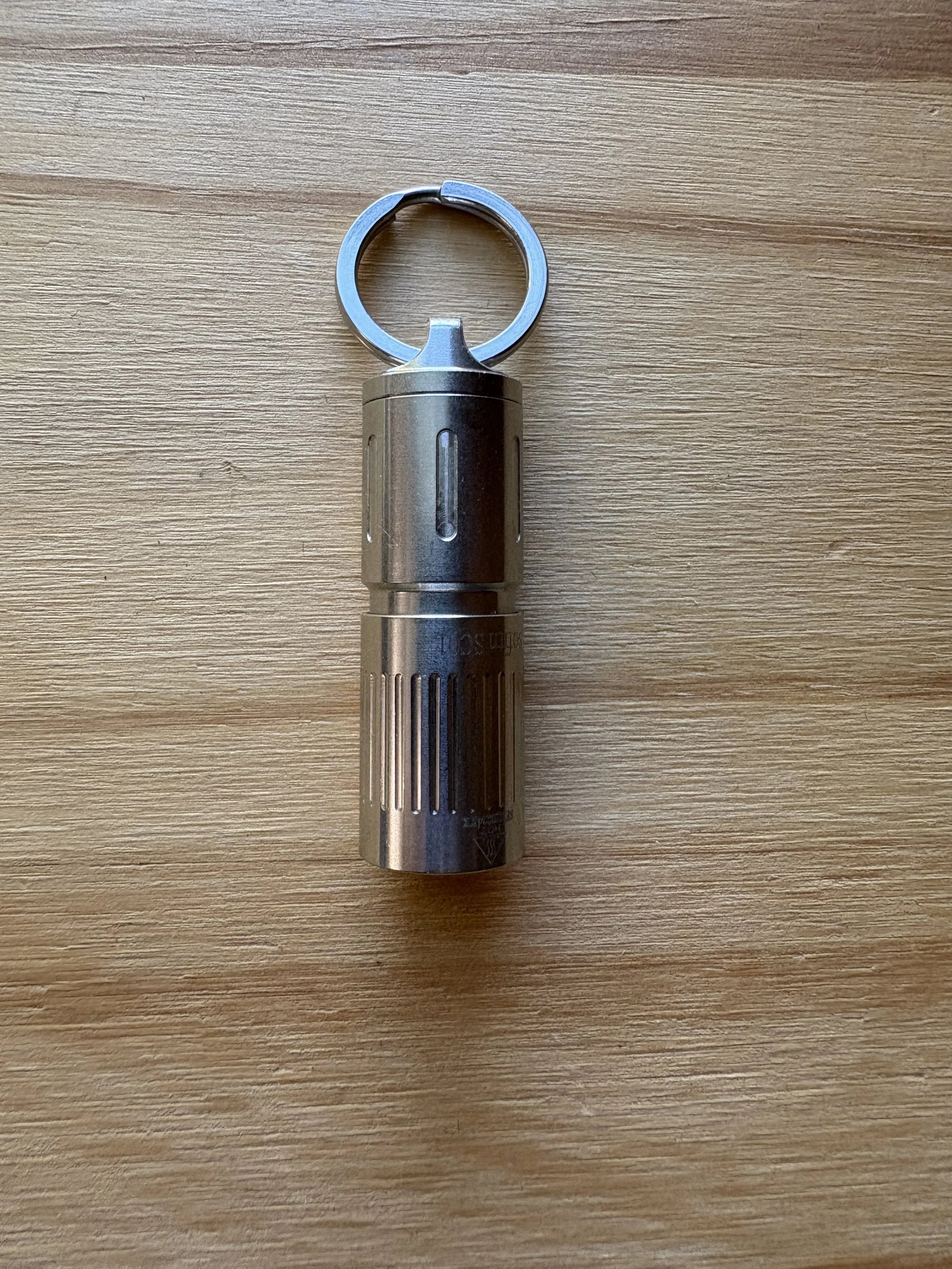 It weighs .67 ounces or 19 grams. And it is TINY. Both the Aurora and the Keylite hit 600 lumens for a few seconds and then drop down. Both also have a true low. The “fat man” among these kyechain lights is the Nitecore TIP SE.