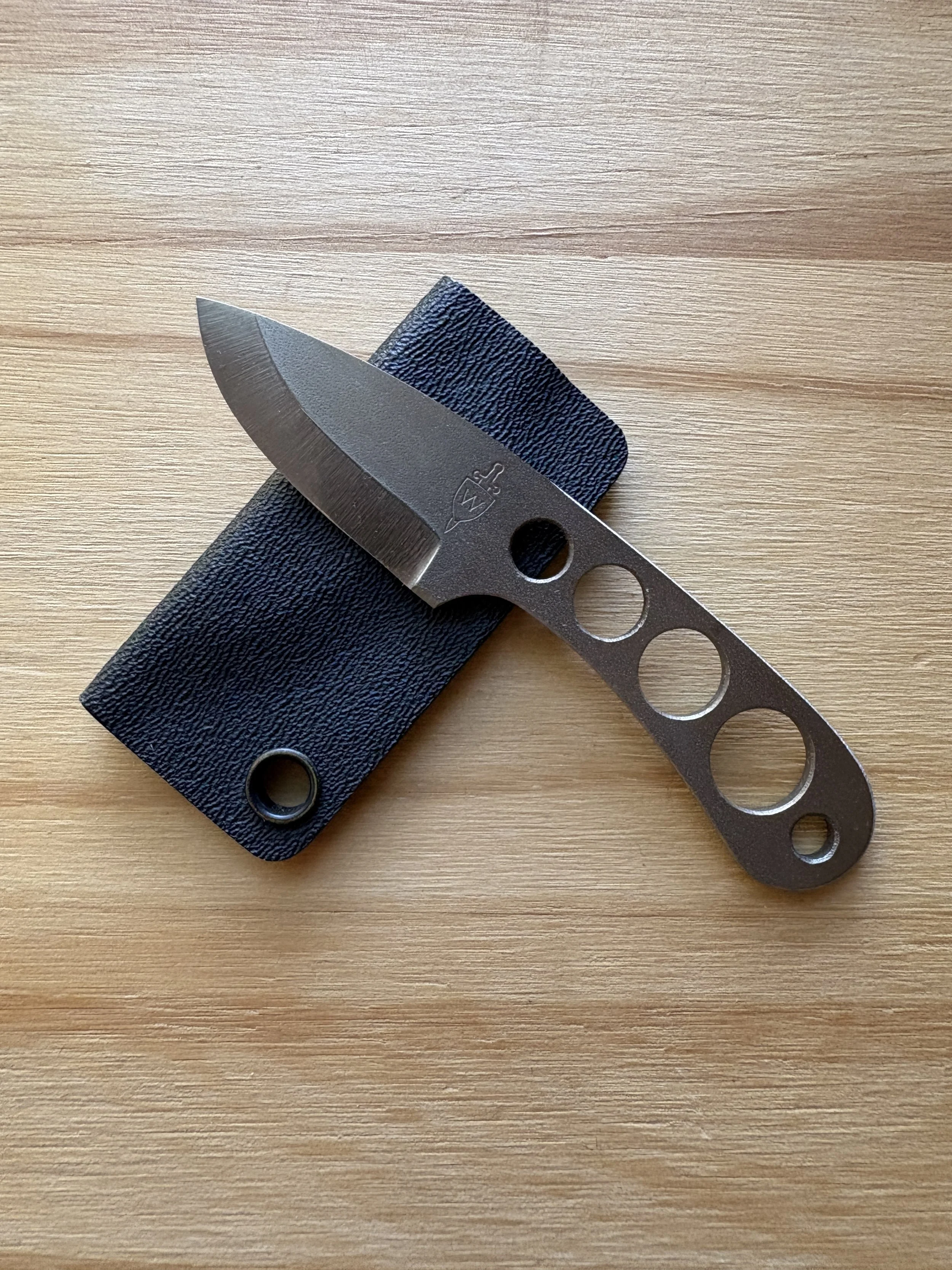It weighs .96 ounces (26 grams) with the sheath. Given that the Imp has long, long been out of production the Aphid II which comes in and out of production as its maker, Dave Wegner, wants, is a good choice. He also sells a similar sized knife with a more complex handle called the Aphid I. This isn’t the lightest knife out there, but the size is super compact and slim and there is one other thing—in more than 15 years of the site and after handling probably 10,000 different blades, nothing comes close to the out-of-box sharpness that you find on the Aphid II. It is a positively hair popping sharp little knife, letting it plow through tasks most knives can’t handle, even with its small profile.
